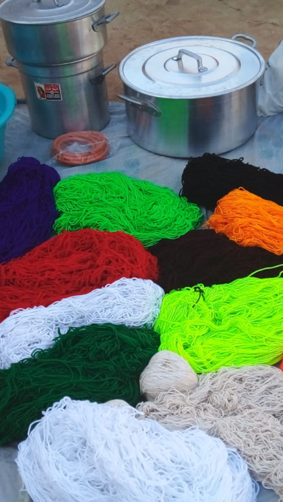 La Mar i la Roser formen part del món de la indústria tèxtil i van voler també fer una aportació d’aquest sector. Durant el seu dia a dia, veuen que moltes de les dones es dediquen a fer manualitats, és per això que es compra un teler i les llanes i estris que es necessiten per dur a terme aquesta activitat.